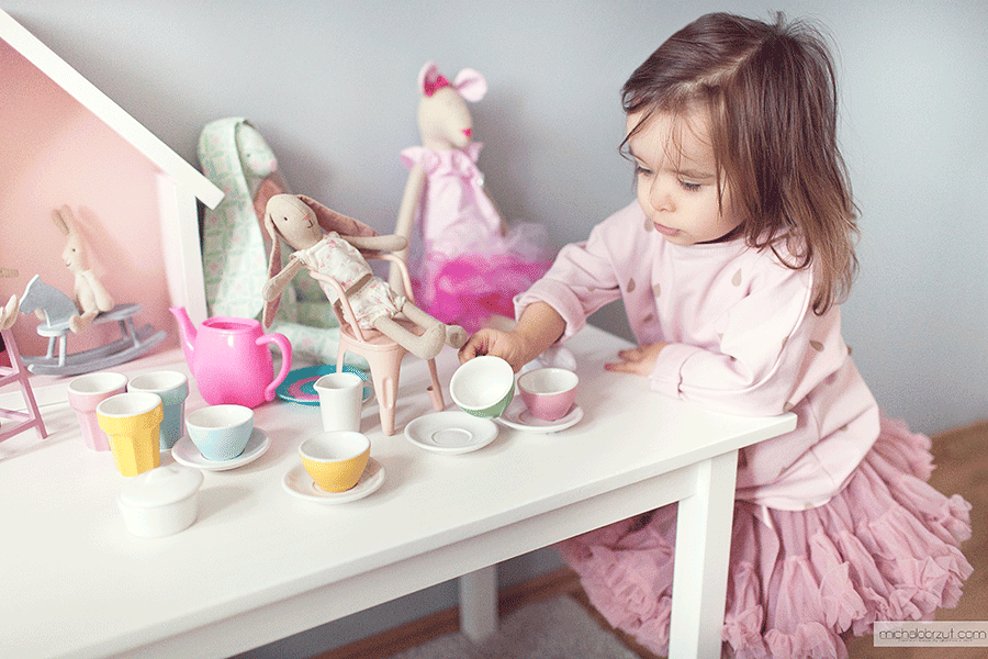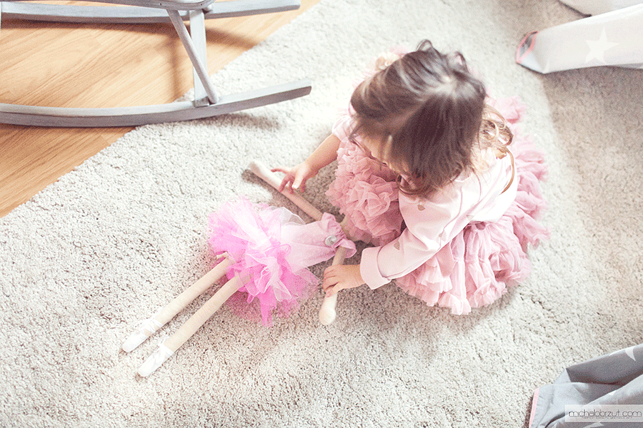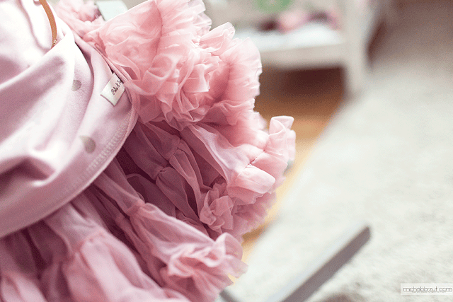 Patrząc jak kręci się w kółko, tańczy a tiulowe falbany fruwają w powietrzu mam wrażenie jakby znalazła się właśnie w jakiejś bajce. Śmieje się w głos a spódniczka faluje razem z nią wesoło. Jej euforia kiedy ją pierwszy raz założyła i nosiła przez trzy kolejne dni ( tak z prezentem się matka wstrzeliła) sprawiła mi ogromną radość.